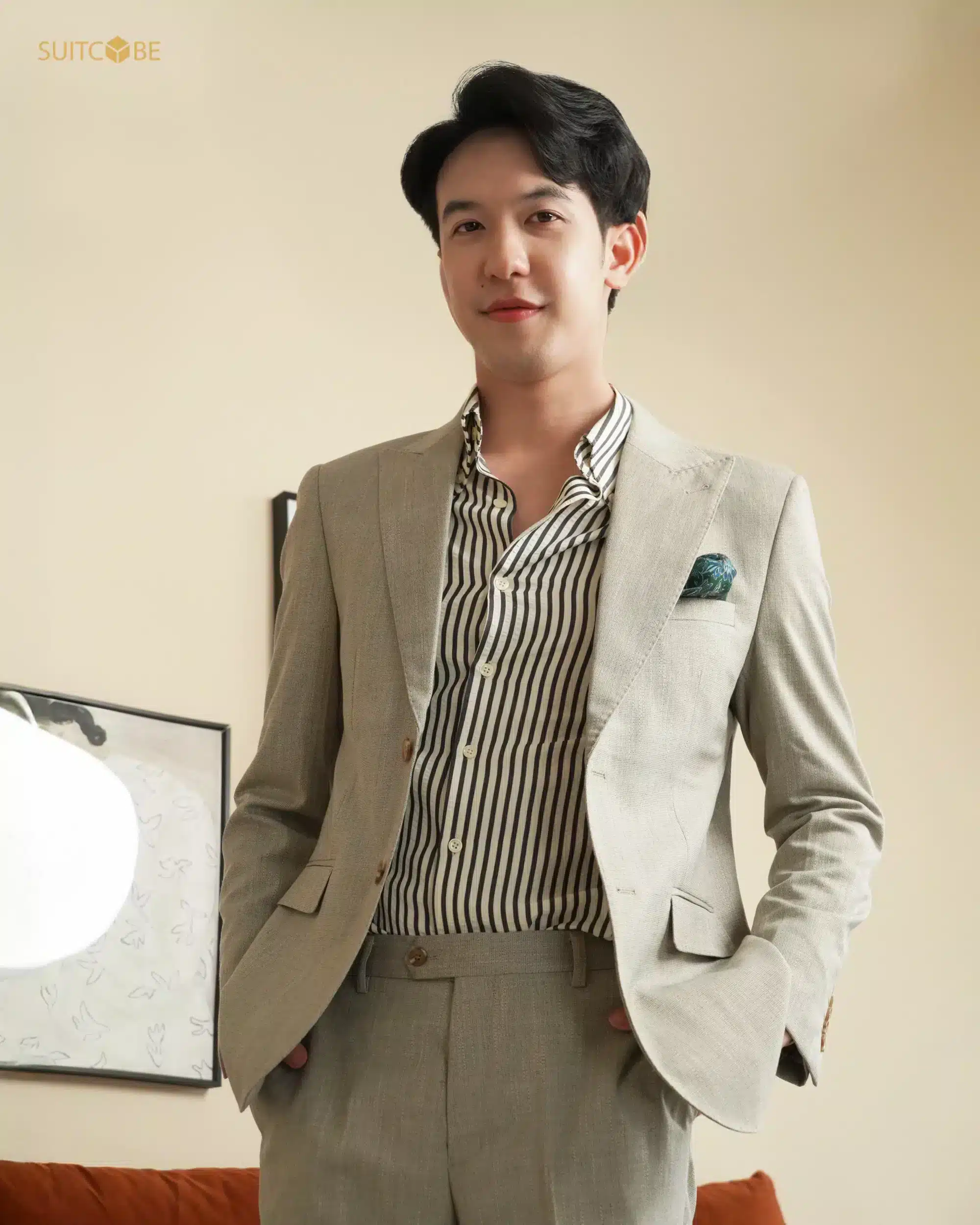 สูทสีเบจ Vanilla Swing UF718-1 สูทโทนเบจที่ใส่แล้วสว่าง มีชีวิตชีวา พร้อมจังหวะสนุกแบบ “สวิง” ในทุกย่างก้าว เหมาะกับวันแคชชวลที่อยากแต่งตัวให้ดูดีแบบ Effortless