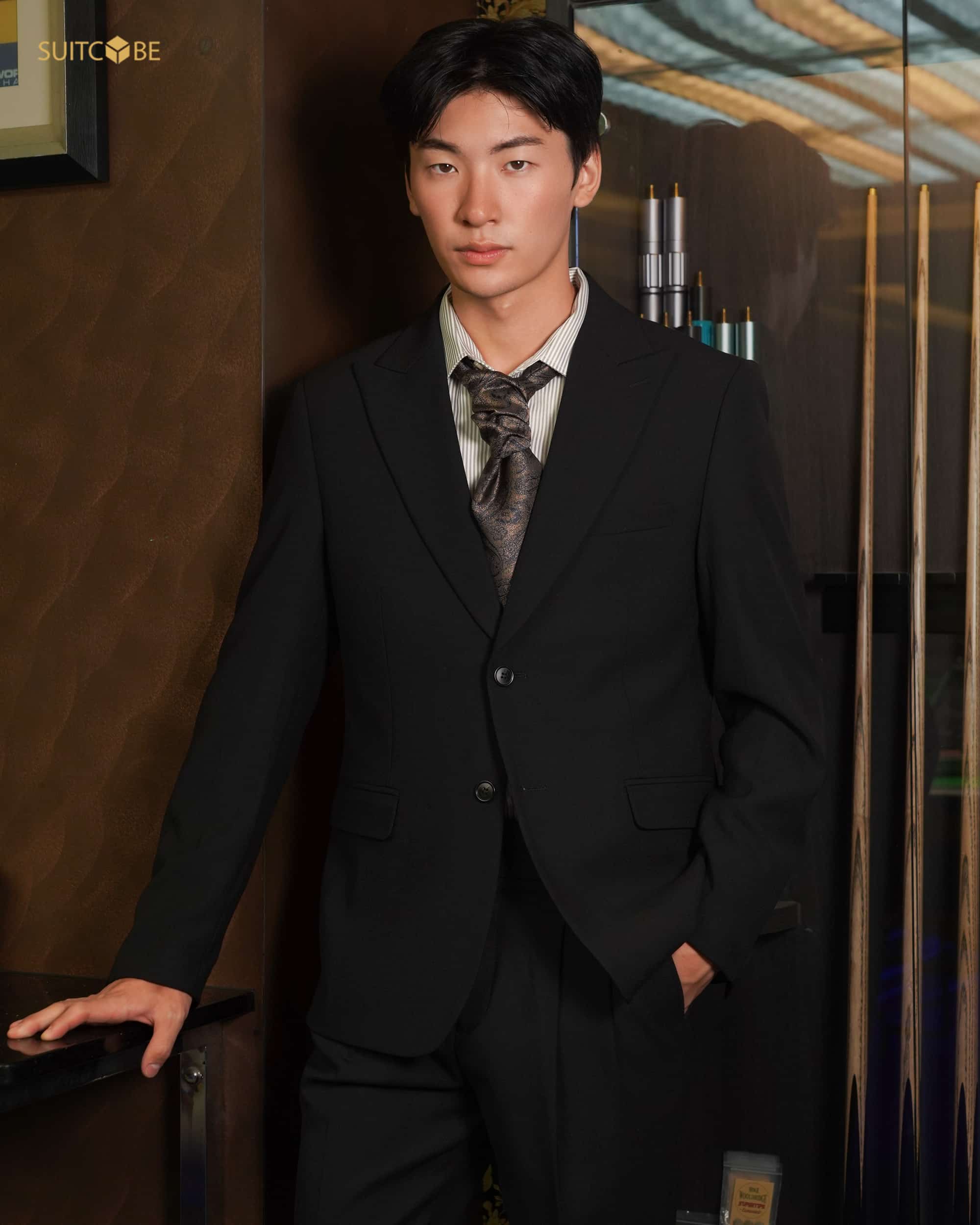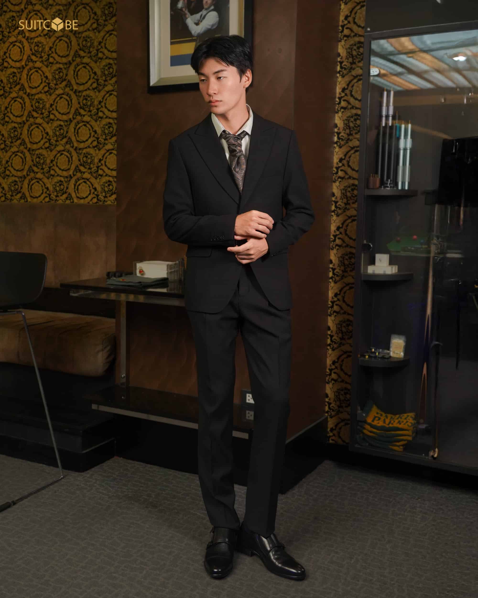 สูทสีดำ ให้ลุคทางการ สุขุม และดูจริงจังอย่างมีระดับ เสริมภาพลักษณ์ให้ดูมั่นคงและน่าเชื่อถือ เหมาะกับโอกาสสำคัญที่ต้องการความเรียบร้อยและความสง่างาม